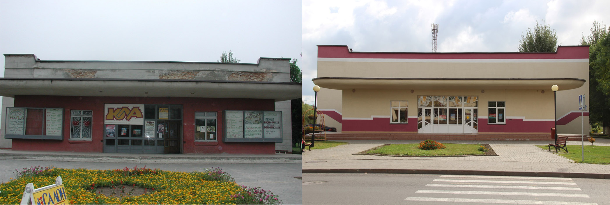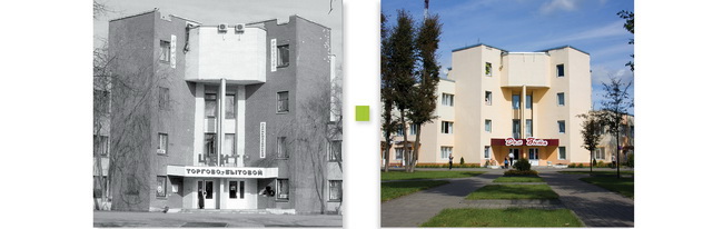 Мостовский район. Обновлённые здания суда, магазина "Аксамит" и ресторана "Кронон."