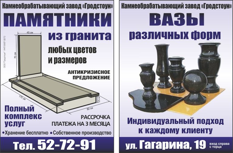 Компания «ГродСтоун» осуществляет производство гранитных памятников, символизирующих вечную память. Камень обрабатывается при помощи современного оборудования, позволяющего реализовывать сложные проекты.