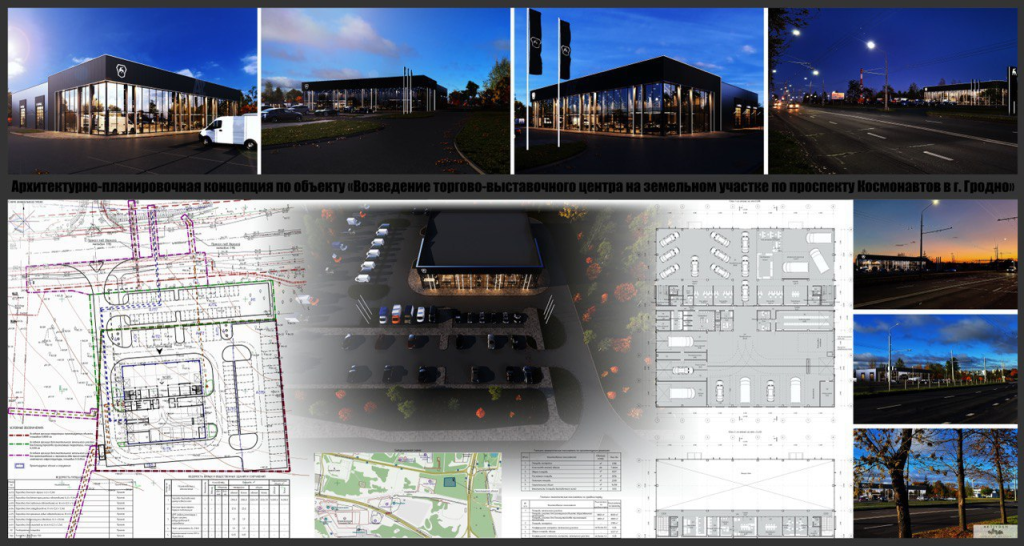 Торгово-выставочный центр (автосалон) построят на проспекте Космонавтов (между ул. Карского и Скидельским шоссе). Это будет современное здание с панорамным остеклением и акцентной подсветкой.