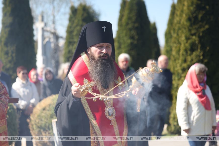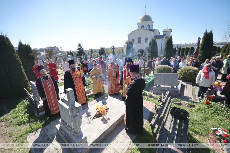 Архиепископ Гродненский и Волковысский напомнил, что в Страстную седмицу и в Светлую седмицу (недели накануне и после Пасхи) не совершается молитв об умерших, не совершается панихид в знак особой радости о Господе. Сегодня состоялось первое поминальное богослужение за две прошедшие недели.