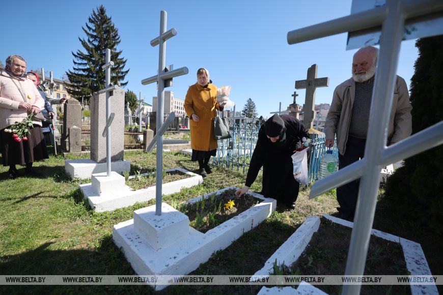 День сегодня в Гродно хотя и солнечный, но ветреный, холодный. И все же как на Божественной литургии, так и просто на кладбище много людей. На старинном некрополе все еще соседствуют исторические и свежие захоронения, когда умершие находят свой последний приют рядом с родными, ушедшими из жизни годы тому назад. Люди приходят семьями, украшают надгробия, ведут безмолвные душевные беседы с близкими людьми, которые, как и сказал священнослужитель, уходят и все же остаются с нами.