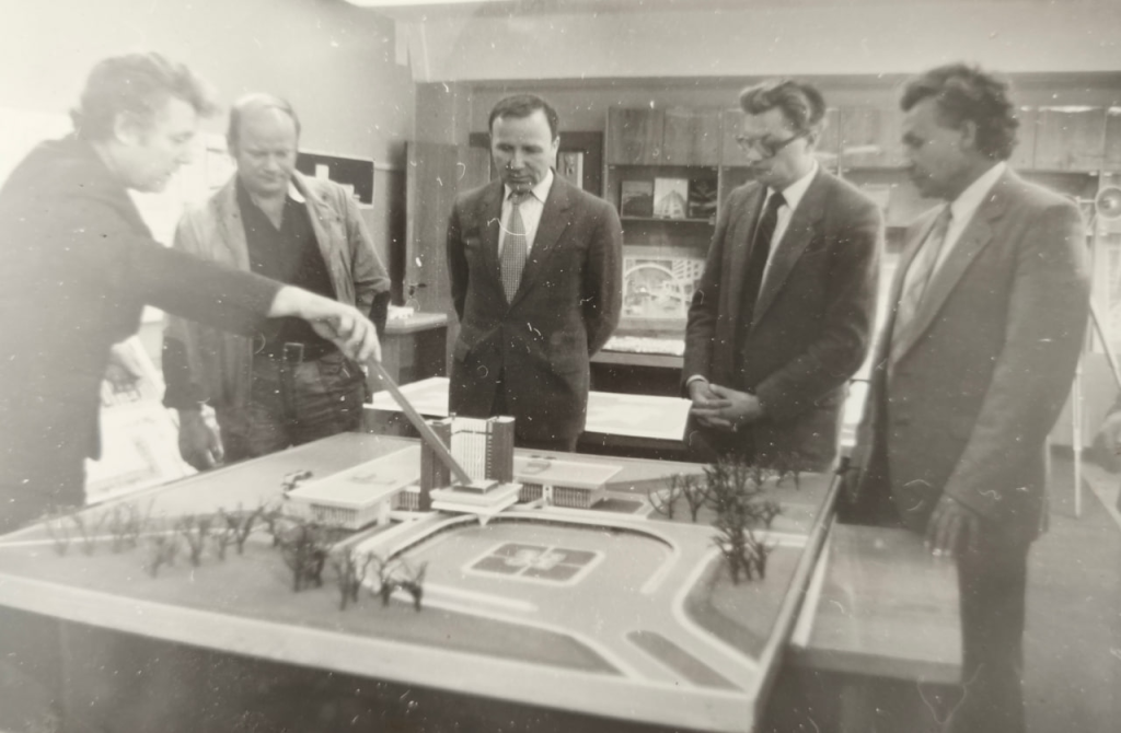 В 1983 году Александр Соболев отказался от должности второго секретаря райкома партии Лидского района: «Я хочу заниматься архитектурой!» – сказал он. Буквально через пару дней ему предложили новую должность – директора Гродногражданпроекта.– Стояла пятиэтажная кирпичная коробка, а внутри все как-то запущено. Коллектив – около 300 человек. Надо же нормальные условия для работы создать! Актовый зал нужен, столовая, неплохо бы и свой спортзал иметь… Начал заниматься этим вопросом, но тогда было запрещено пристраивать актовые залы к административным зданиям.