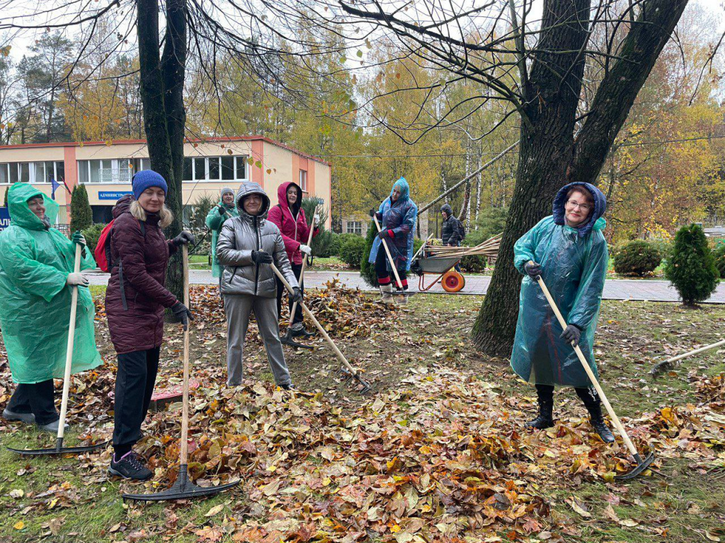 В санатории активисты провели уборку обширной лесо-парковой зоны: собрали опавшую листву и мусор. В итоге было приведено в порядок около двух гектаров земли. Собранная листва была аккуратно сложена в кучи для последующей утилизации. В ходе субботника мужская половина освободила место на складе от устаревшего оборудования столовой, которое отработало свой срок. Все ненужные предметы были аккуратно загружены на металлолом. Женщины в это время сделали генеральную уборку в столовой.