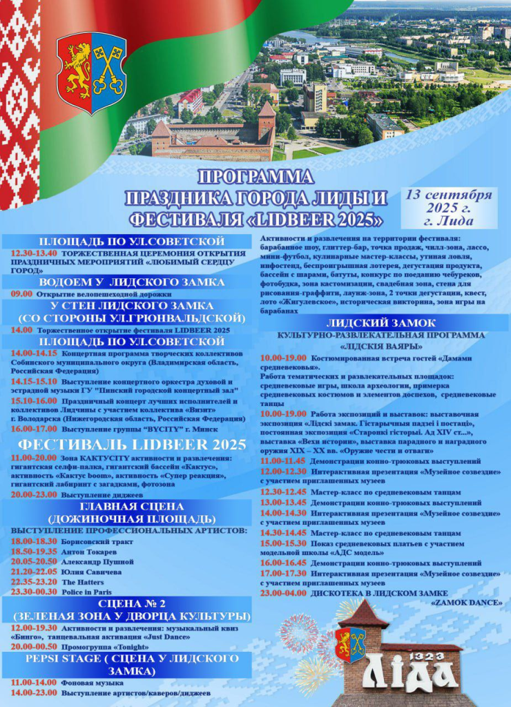 В Лиде пройдут Праздник города Лиды и фестиваль «LIDBEER 2025»