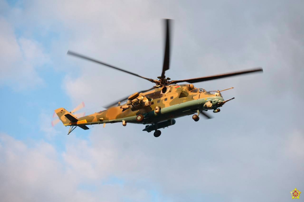Воздушное прикрытие на переправе обеспечивали белорусские летчики на ударных вертолетах Ми-35.