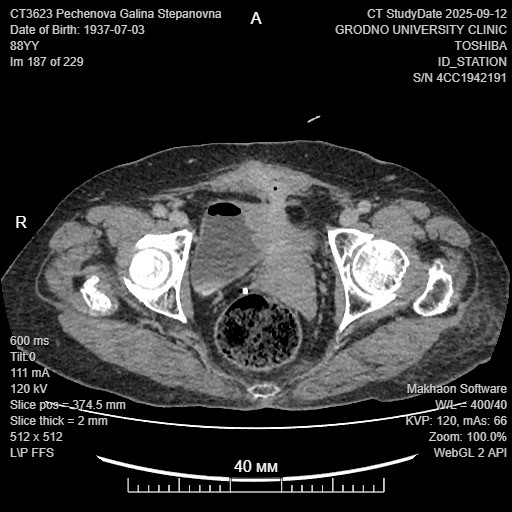 Первоначально восьмидесятивосьмилетняя гродненка, в анамнезе которой значился ранее перенесенный острый дивертикулит, с жалобами на ухудшения состояния здоровья обратилась к проктологу в консультативную поликлинику. Для постановки точного диагноза ей назначили колоноскопию, компьютерную и магниторезонансную томографию органов брюшной полости и малого таза, консультацию гинеколога и уролога. В ходе обширного обследования был обнаружен толстокишечно-влагалищно-маточно-мочепузырно-кожный свищ. Такие патологические сообщения (соустья) между несколькими органами являются относительно редкой, но довольно тяжёлой патологией, которая требует хирургического вмешательства. Для окончательного решения вопроса об операции был проведен консилиум с участием широкого круга специалистов, в том числе кардиологов, анестезиологов и реаниматологов.