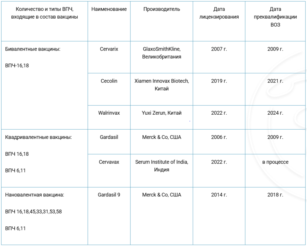 Вакцины для предупреждения ВПЧ-инфекции, лицензированные по состоянию на 01.01.2025 (согласно данным Минздрава Беларуси):